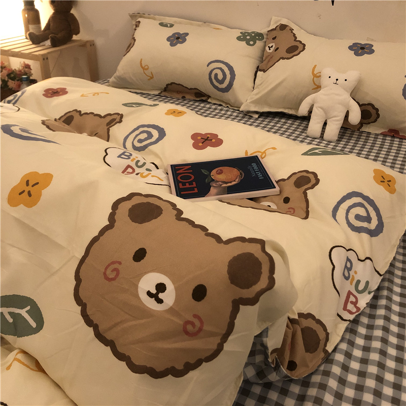 Cute Korean cartoon Little Bear head ins washed cotton four pieces of covered bed sheet Quilt Cover Dorm Bed bedding 1 51 8m