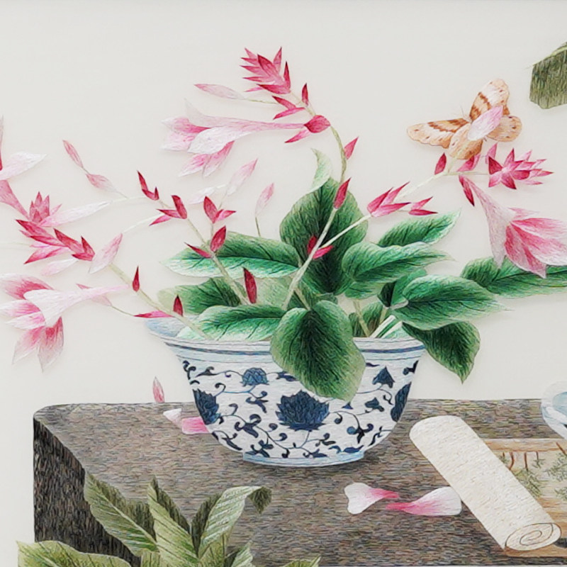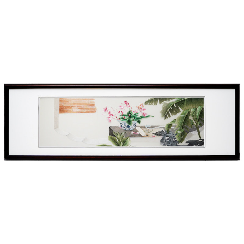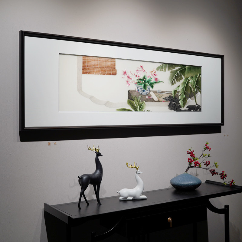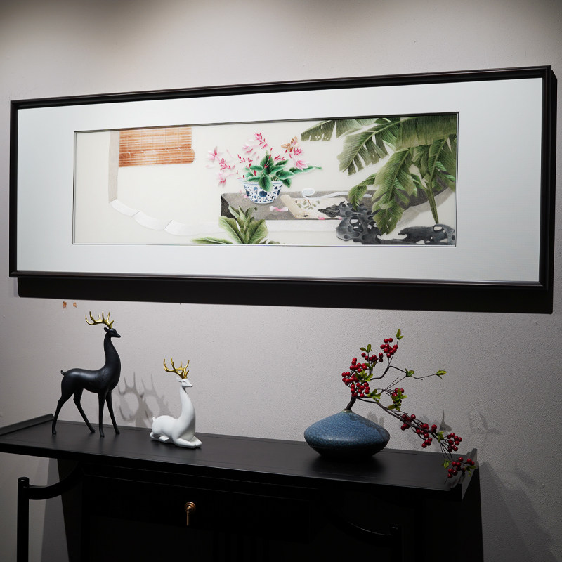 New Chinese-style modern decorative painting pure hand-embroidered framed customizable study living room sofa background wall painting