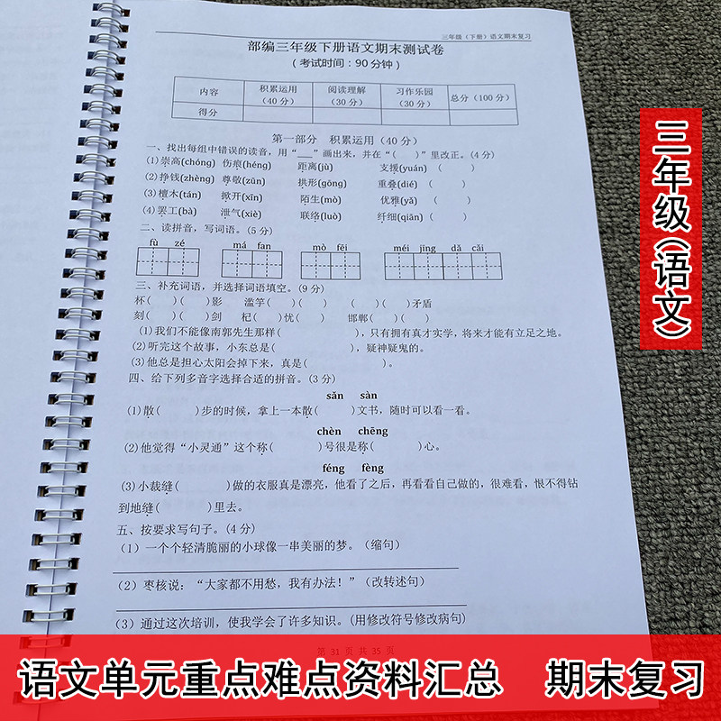 The Ministry of Education of the New People's Edition 3 Grade 3 Second Volume Semester Chinese End-of-Term General Review Data Unit Exercises with Answers