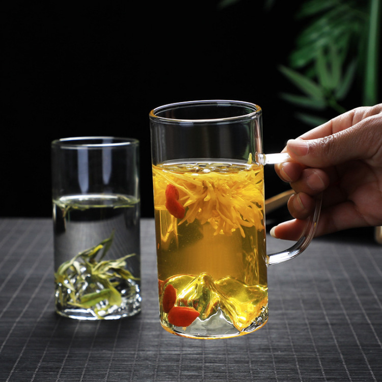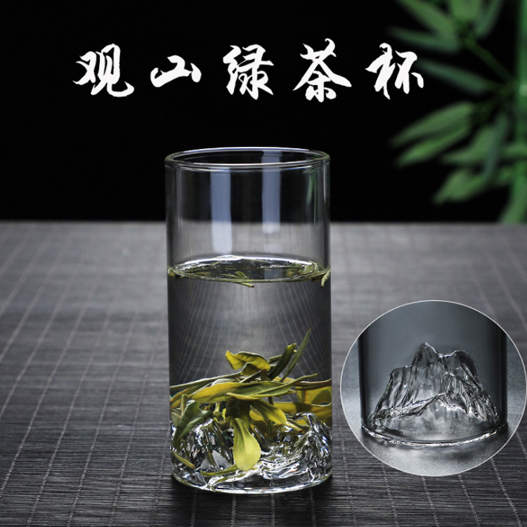 glass water cup high temperature resistant green tea cup high boron silicon lead-free heat-resistant glass straight tube View mountain cup home tea