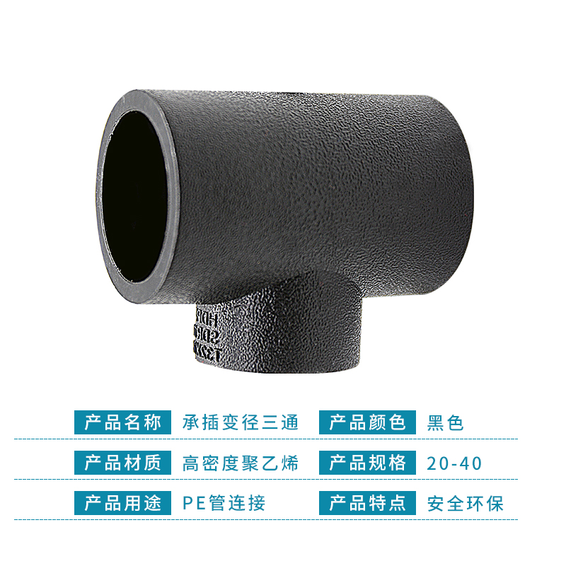 Variable diameter three-way different diameter socket-type black PE pipe fittings hot melt 6 minutes turn 4 minutes 25 20 32 40 50