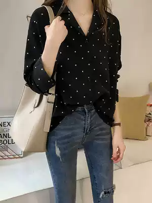 Chiffon shirt female design sense niche wave dot red shirt 2021 Spring and Autumn New Joker stacked shirt