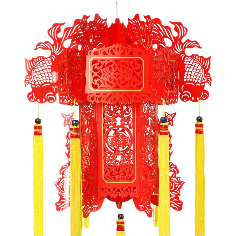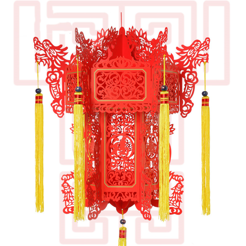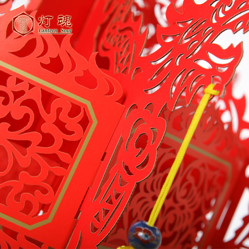 Hollow blessing word paper-cut hexagonal palace lamp New Year Spring Festival decoration gift red Lantern