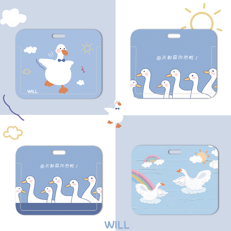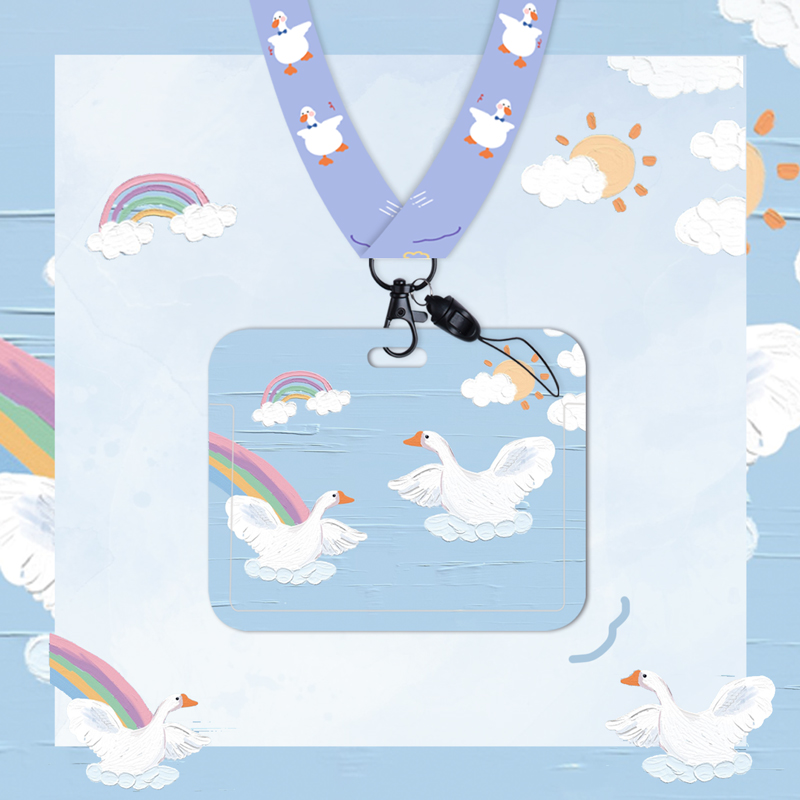 Cross Slab Duck Duck Creative Cutting Sleeve Teenage Campus Student Meal Card Work Card Sheep City Tong Citizen Card ID Bus Subway Card Pendant Transport Protection Shell Hard Transparent Hanging Rope Cartoon Ins