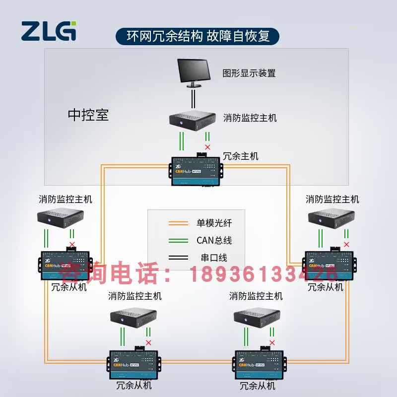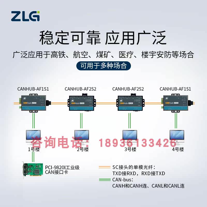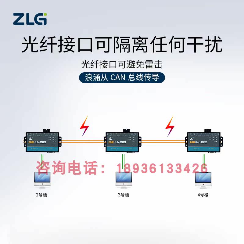 ZLG Zhou Ligong Zhiyuan Electronics Intelligent CAN Fiber Optic Converter Hub Series CANHub-AF1S1 2S2