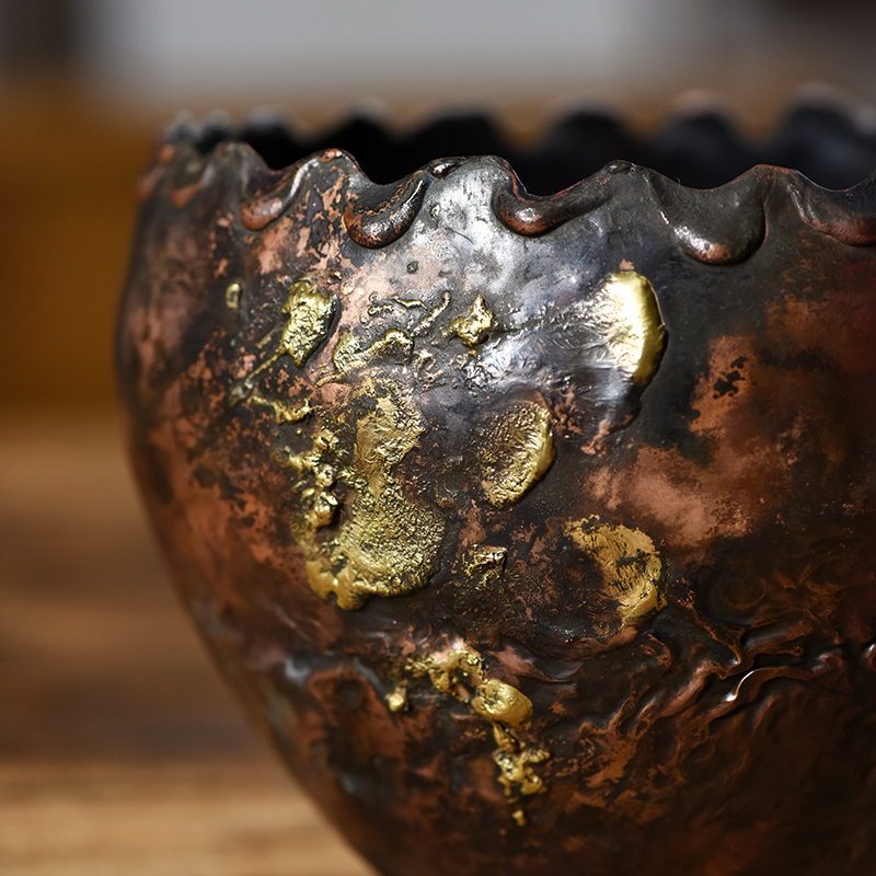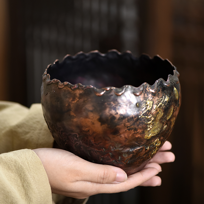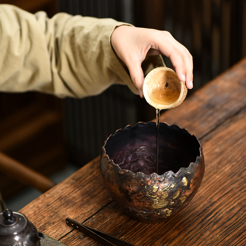 Wind Valley Mountain House Handmade Retro Copper Tea Washing Tea Cylinder Water Bowl Pen Washing Tea Dregs Bucket Built Water Washing Bowl Kung Fu Tea Ceremony