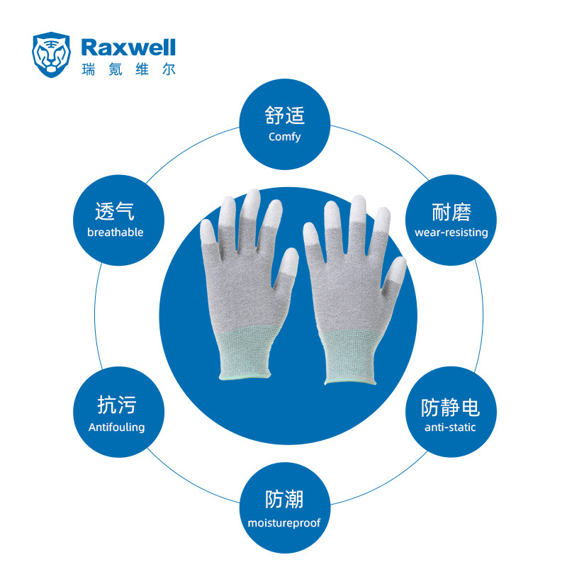 Raxwell Labor Gloves Carbon Fiber Weave PU Work Gloves (Finger Dip) Antistatic Independent Fit 10 Deputy Package