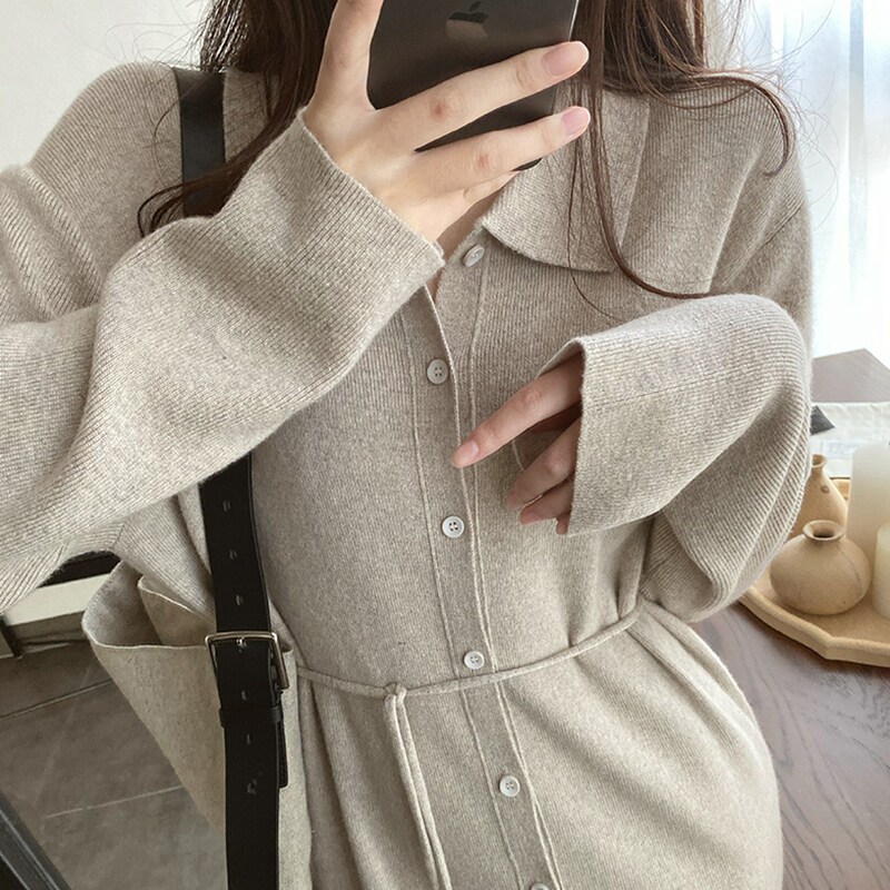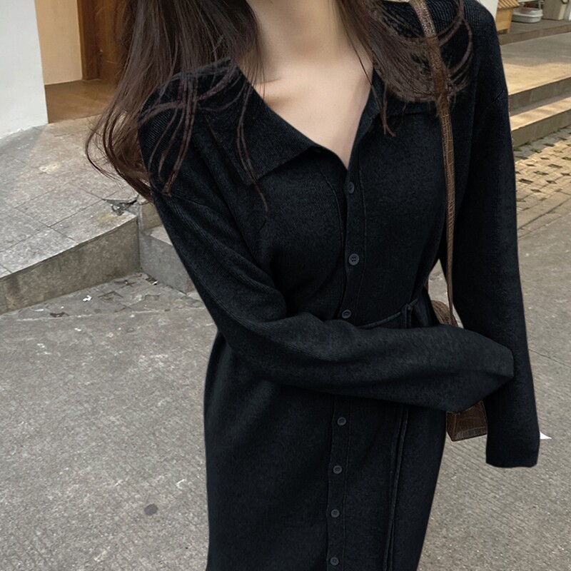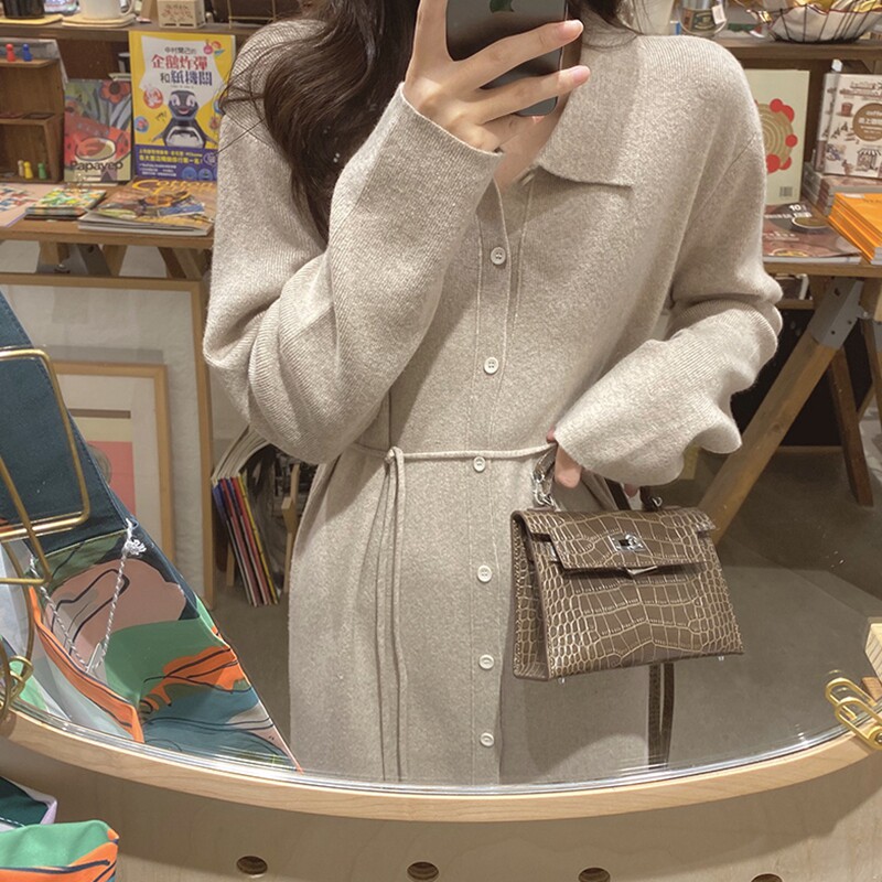 Sweater Skirt Woman Cardiovert Jacket 2022 Spring Autumn New 100 lap outside through the knee long version of the bottom knit ocean dress