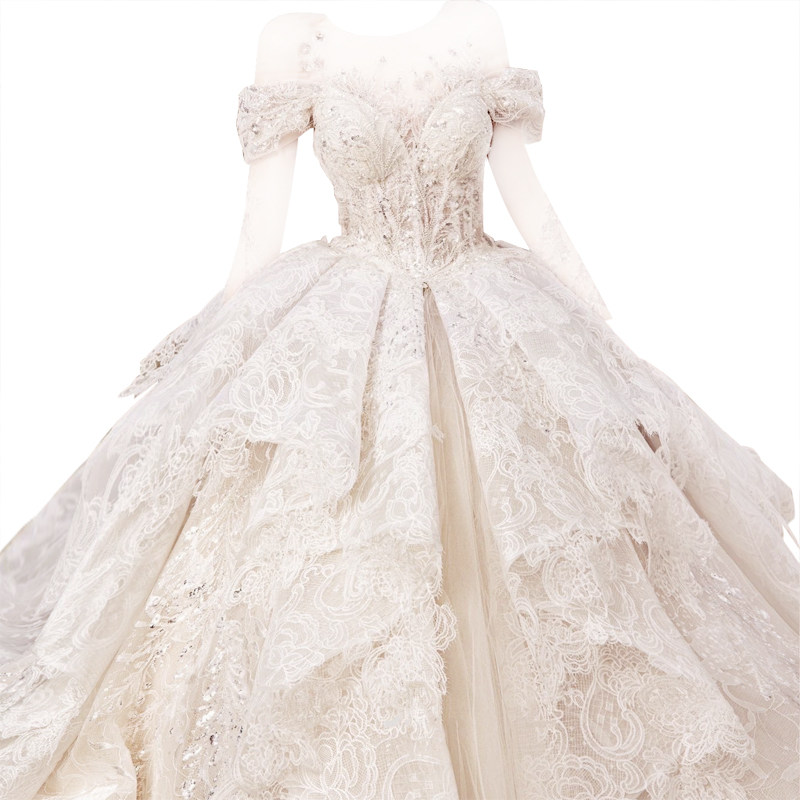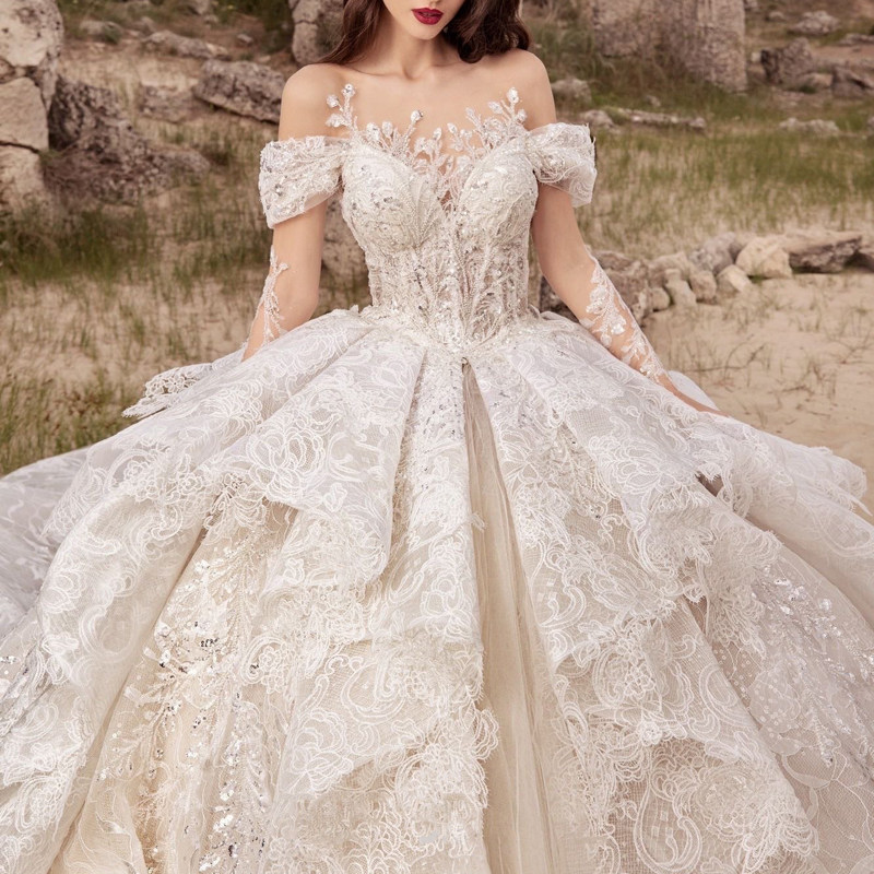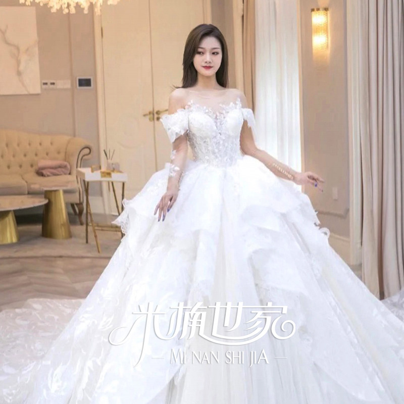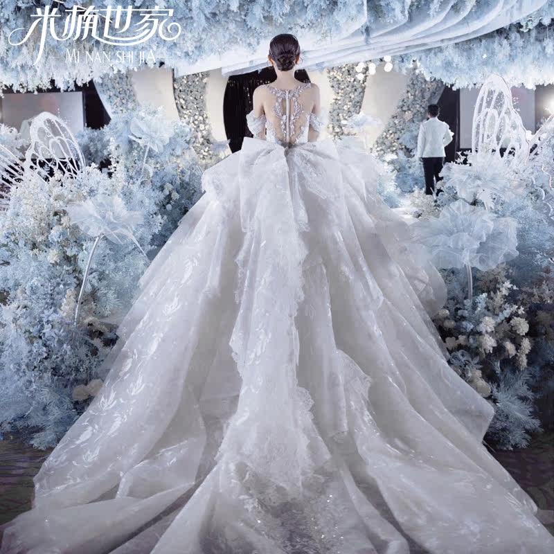 New Net red luxury lace main wedding bow long sleeve Palace autumn and winter retro European backless dream tailing