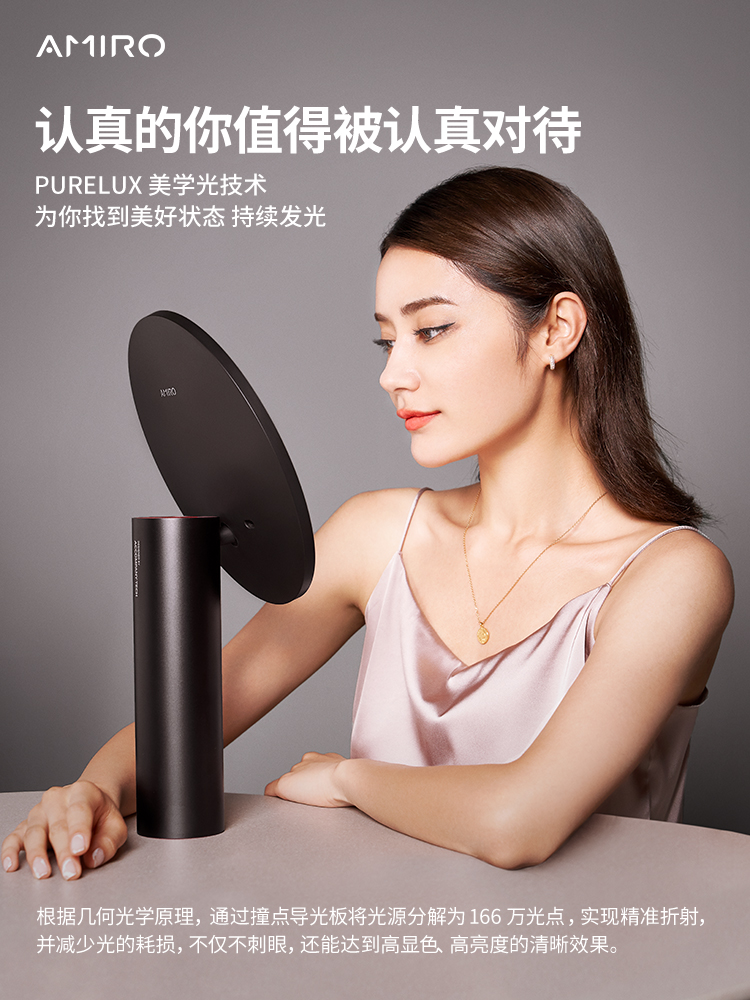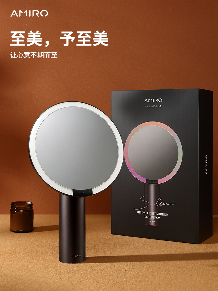AMIRO Mirror LED With Light O Series Small Black Mirror Smart Desktop Daylight Mirror Dressing Mirror