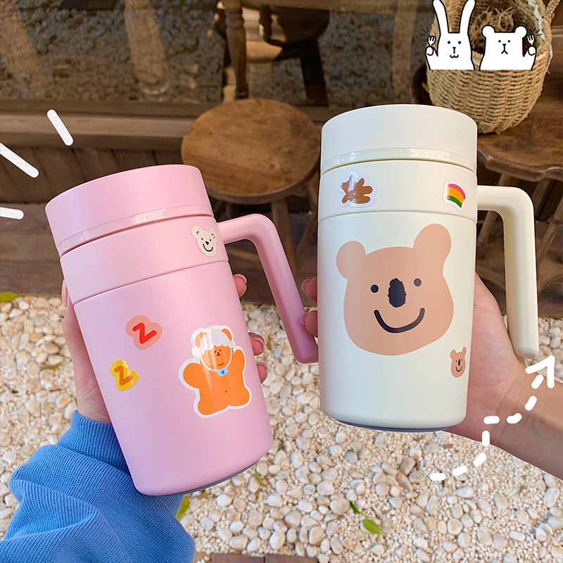 Mark thermos cup with handle Men's and women's household tea cup stainless steel cup Tea water separation large capacity water cup