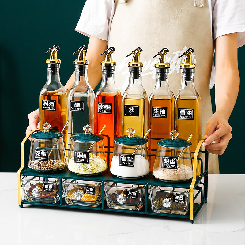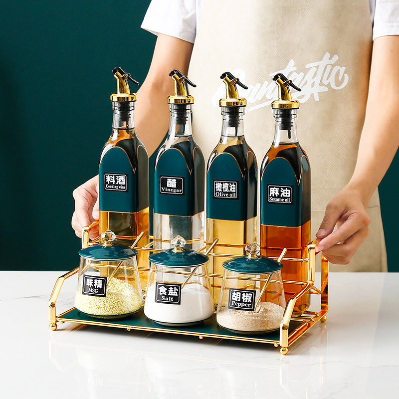 Kitchen Supplies Seasoning Case Seasoned Bottle Suit Home Oil Salt Sauce Vinegar Bottle Zoco Box Containing Box Light Lavish Combination