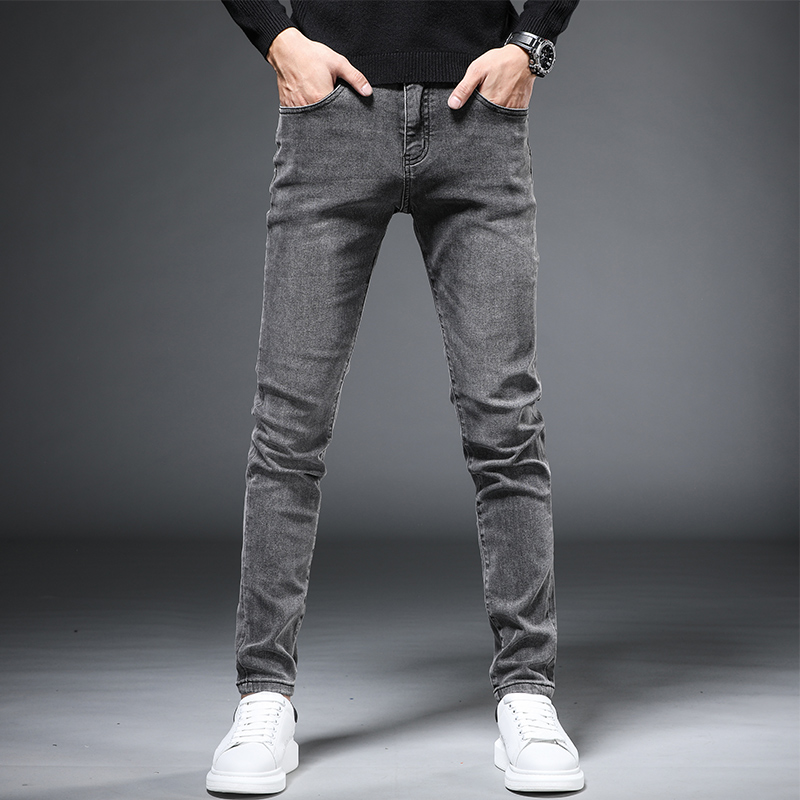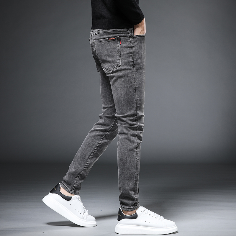 Hong Kong tide brand high-end jeans men's autumn and winter models slim small feet all-match plus velvet thick long pants men's clothing