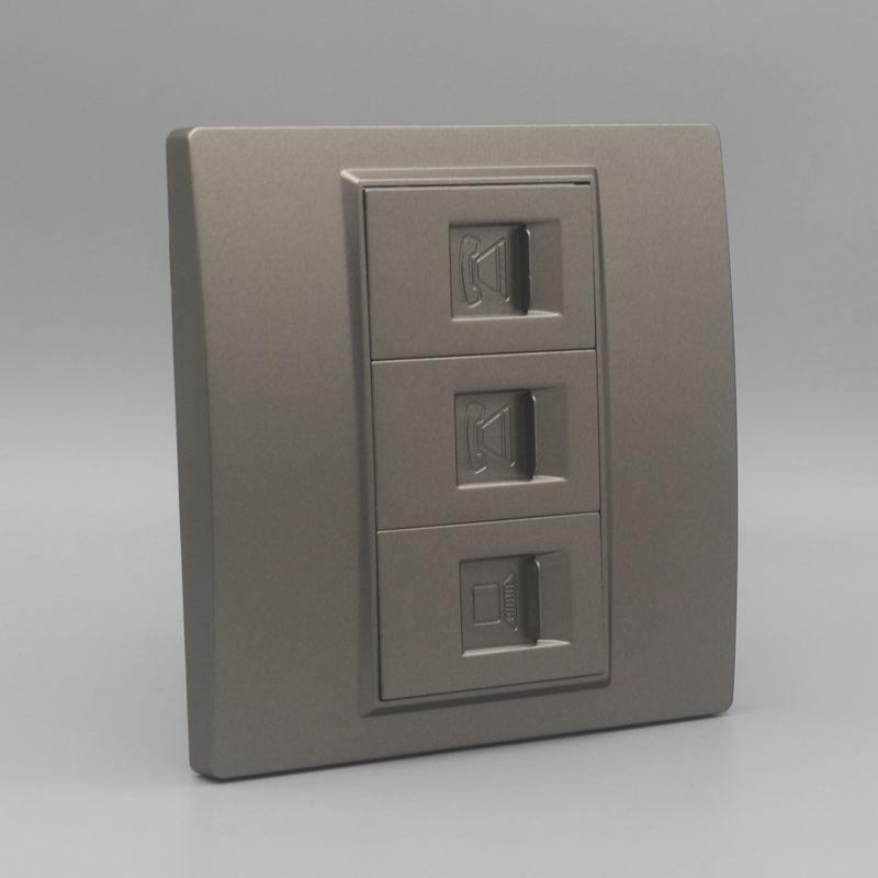 Deep grey 86 voice information computer socket 2 RJ11 telephones with 1 RJ45 ultra five network panel