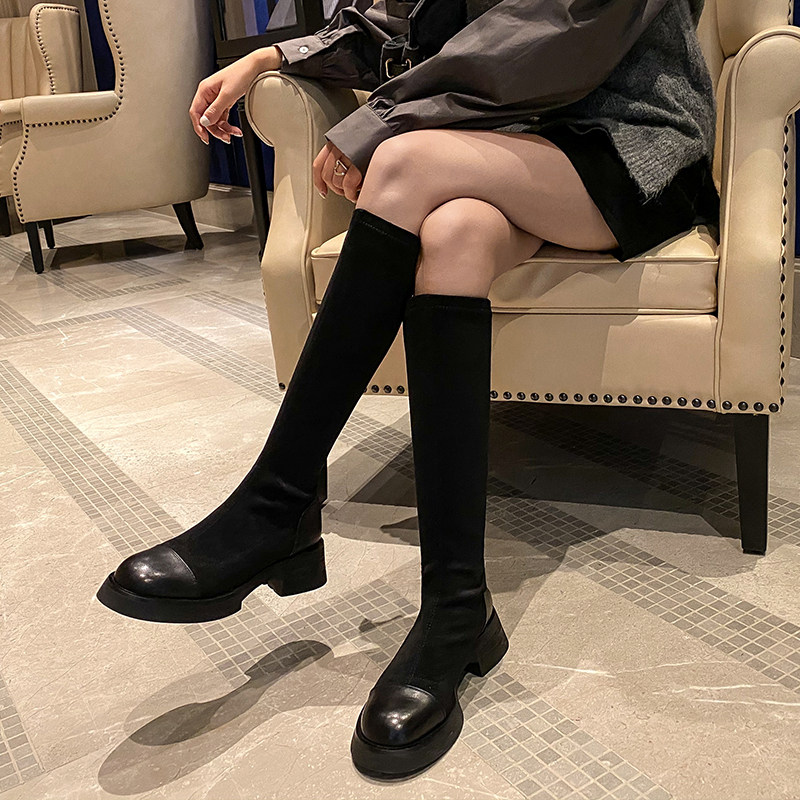 Juxian thin thick bottom suede high boots boots small casual riding boots elastic boots martin boots women's short boots