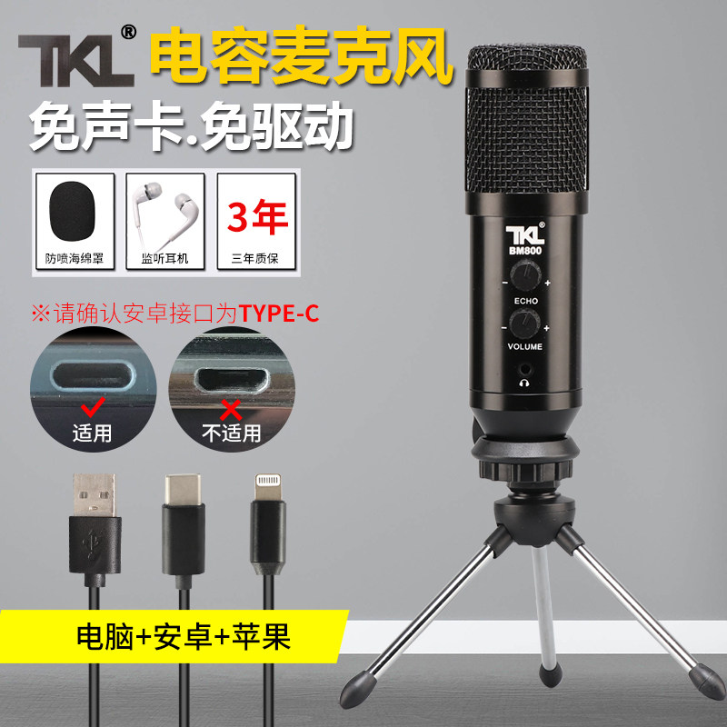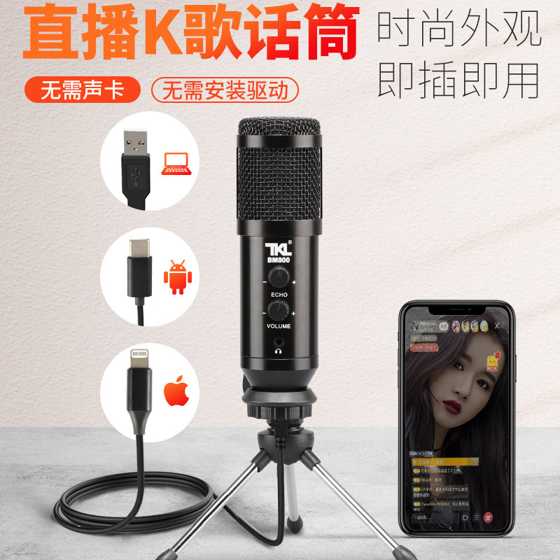 BM800 popular K song phone capacitive microphone singing Divine Instrumental Soundtrack Record Song Recording Microphone Shake Sound Live Device Sing the sound card Huawei Computer Desktop USB Apple Android Private Line