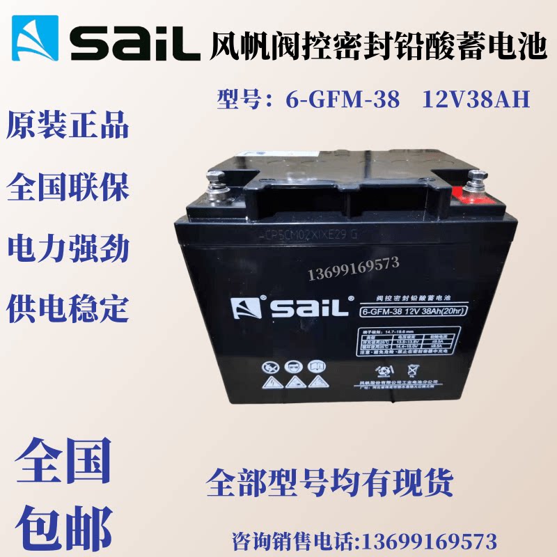 Wind sail battery 12V38AH lead acid maintenance free 6-GFM-38AH computer room base station photovoltaic reserve energy storage power