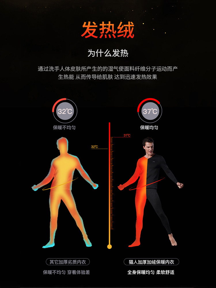 Cat man men's thermal underwear men's thickening and fleece suit cold winter self-heating autumn clothes sanitary pants men's bottoming