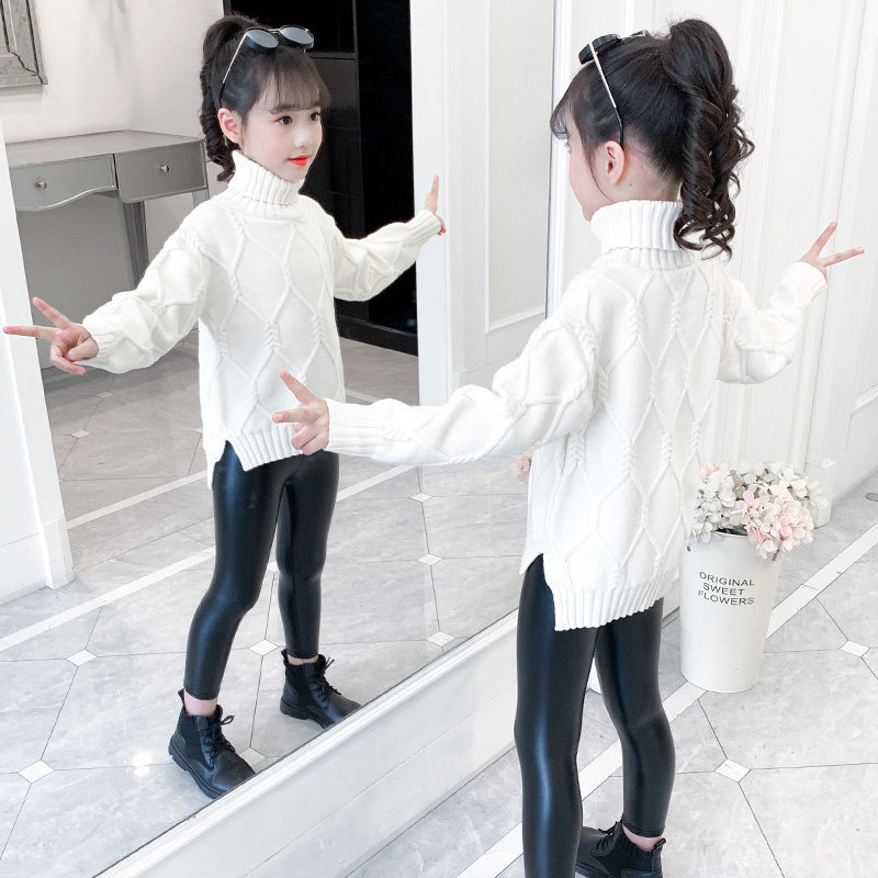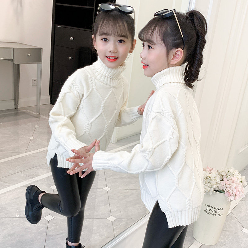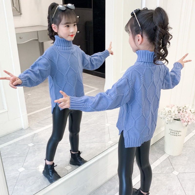 Girls' autumn and winter thickened bottoming shirts Western style sweaters 2022 autumn girls' knitted sweaters high-necked children's suits