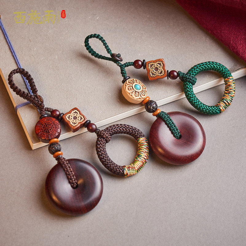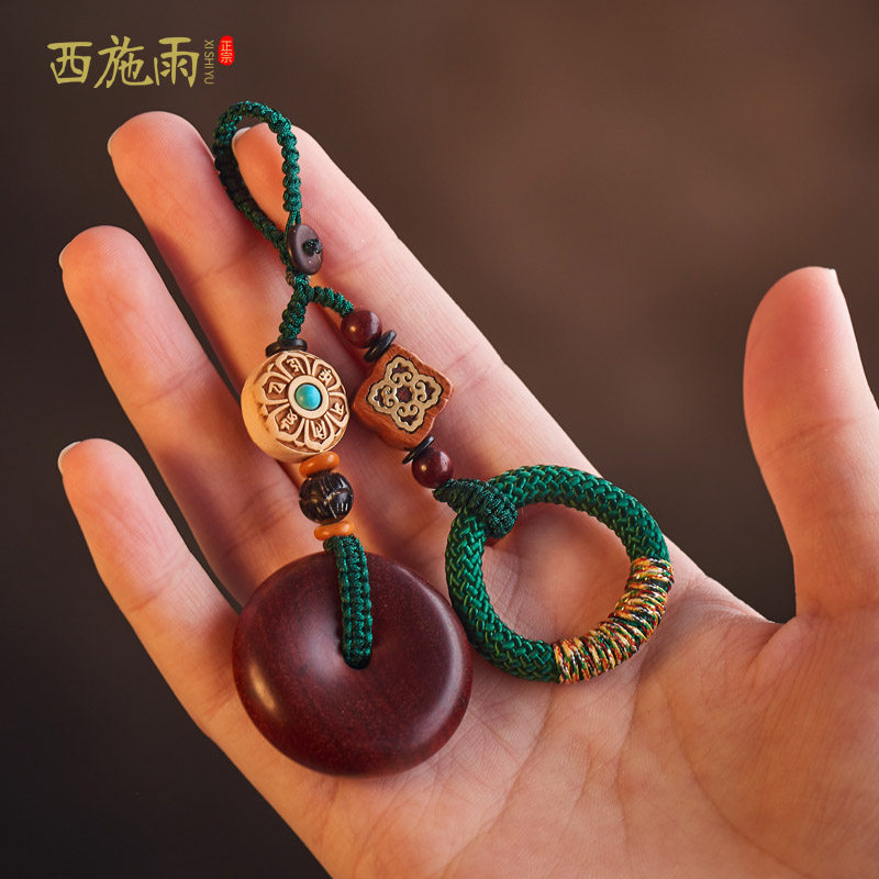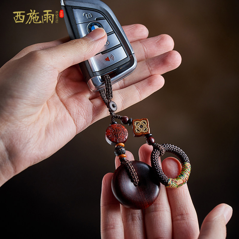 Rosewood car key chain pendant men's safety buckle high-end handmade key chain pendant goddess car key pendant