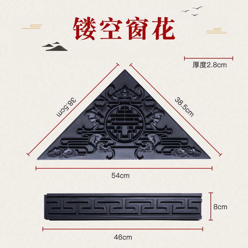 Triangle Fu word corner flower Back line flower Hollow window grille Combination window grille