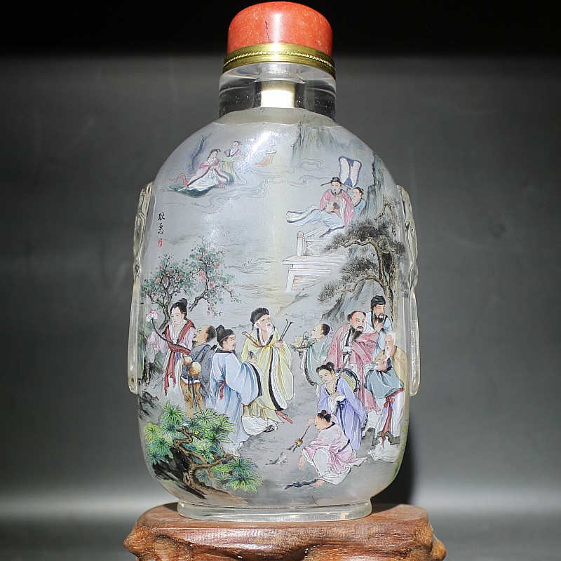 Natural hair crystal inner painting snuff bottle "Qun Xian Shou Shou"