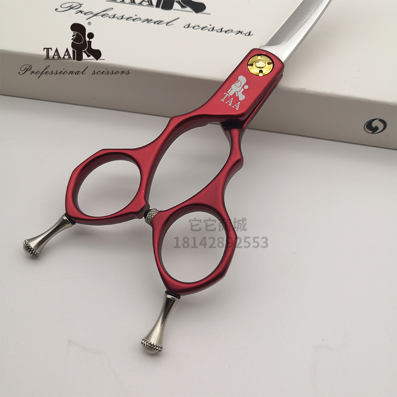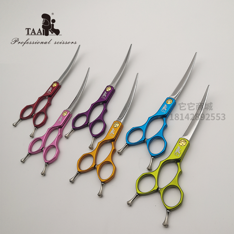 TAA It it pet grooming left hand special color aluminum alloy handle small curved scissors 6 inch finishing integrated curved scissors