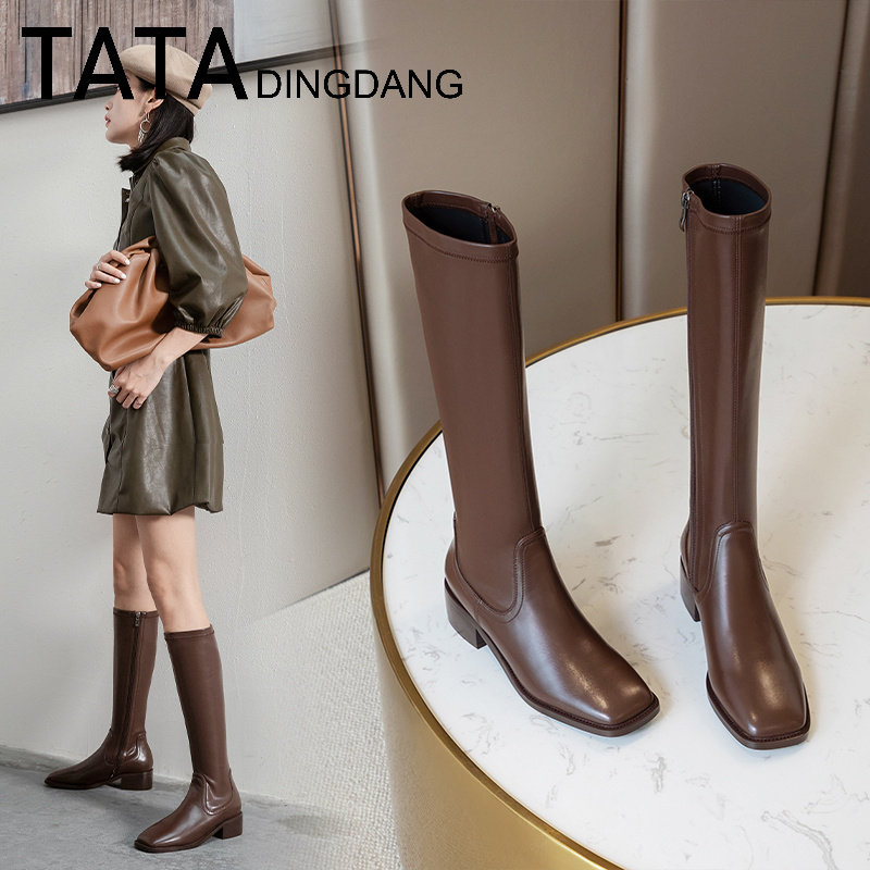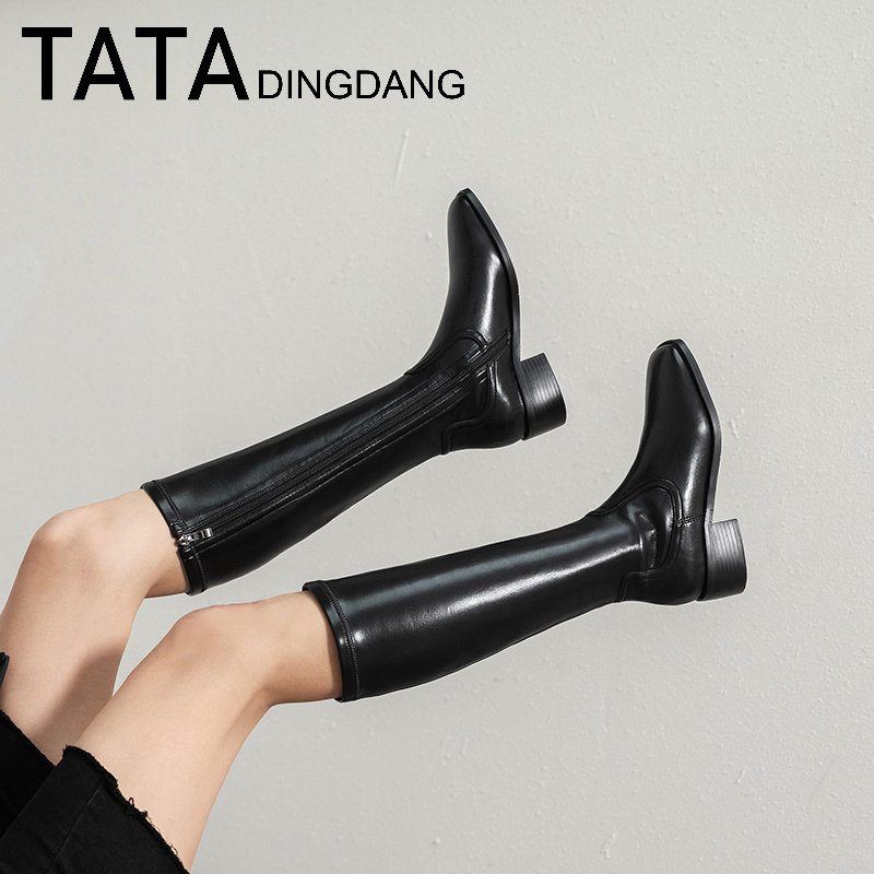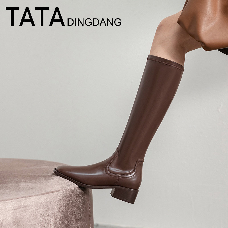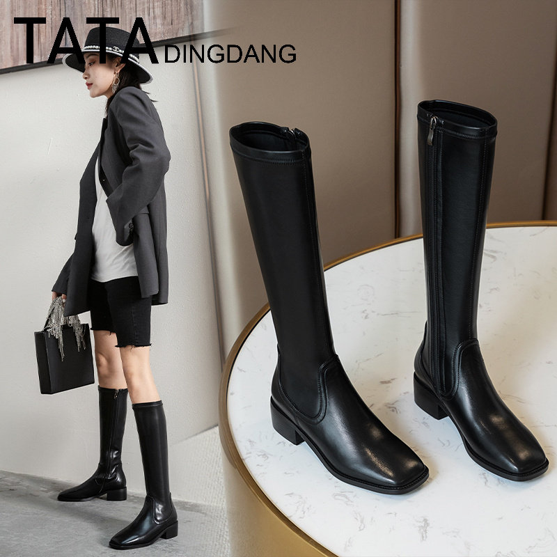 TATA DINGDANG Official little guy but knee long boots on her female shoes leather boots high cylinder long cylinder riding boots