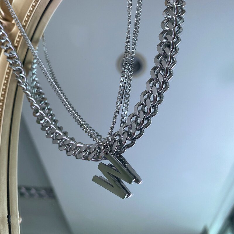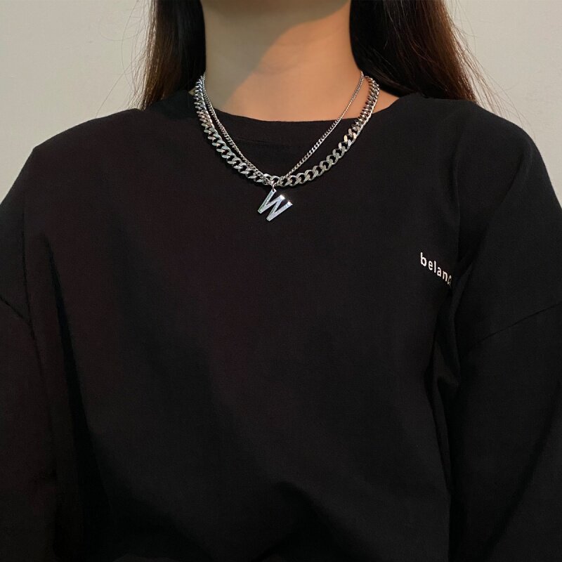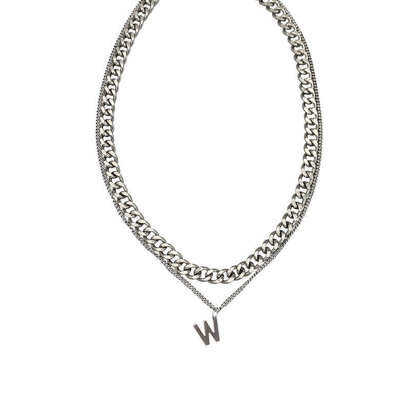 European and American stainless steel chain necklace W letter stacked collarbone chain personality hip hop versatile titanium steel short necklace female