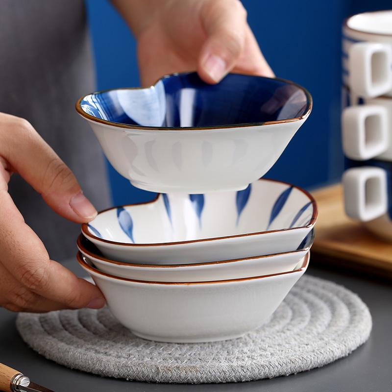 Japanese-style home love bowl creative heart-shaped ceramic bowl binaural bowl dessert bowl fruit personality salad bowl breakfast bowl
