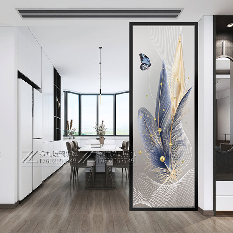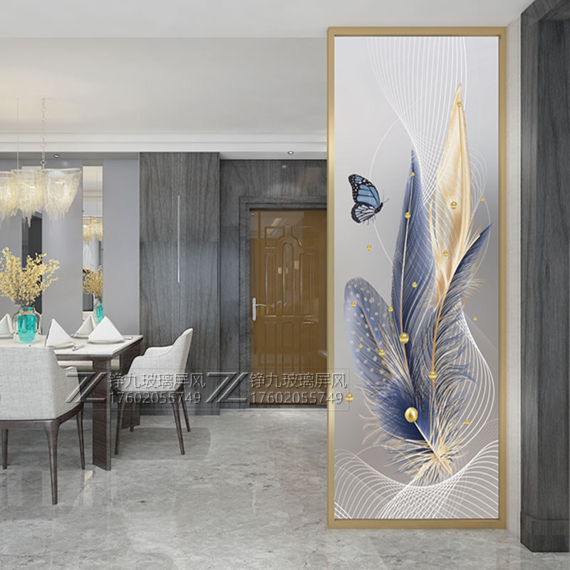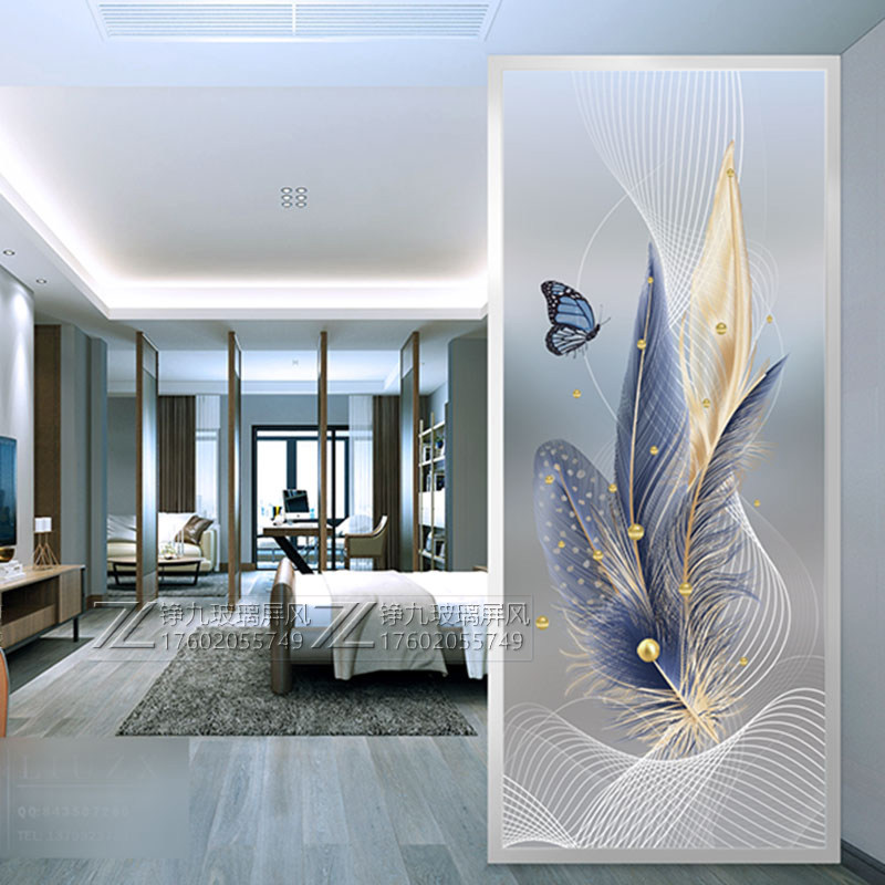 Custom living room art glass screen partition wall modern simple decoration bedroom shade entrance light luxury abstract painting