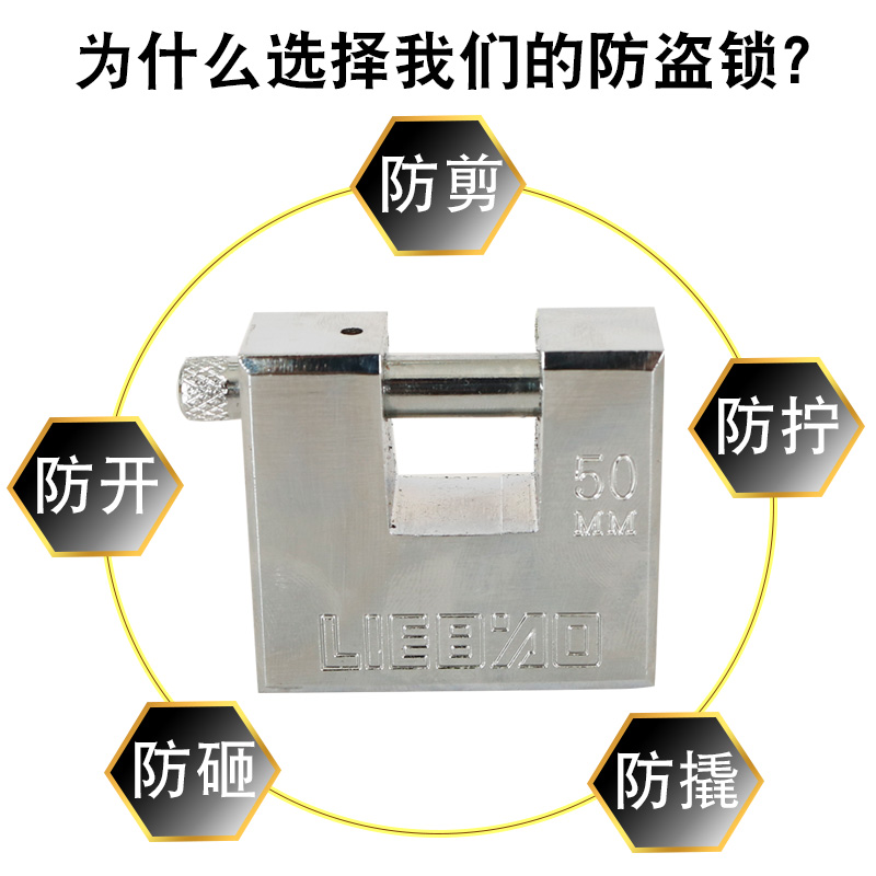 Rectangular through open padlock horizontal open small number key lock Home waterproof anti-rust anti-prying lock big door lock anti-theft through lock