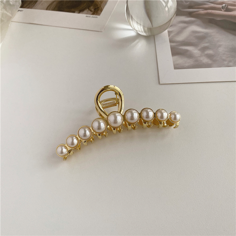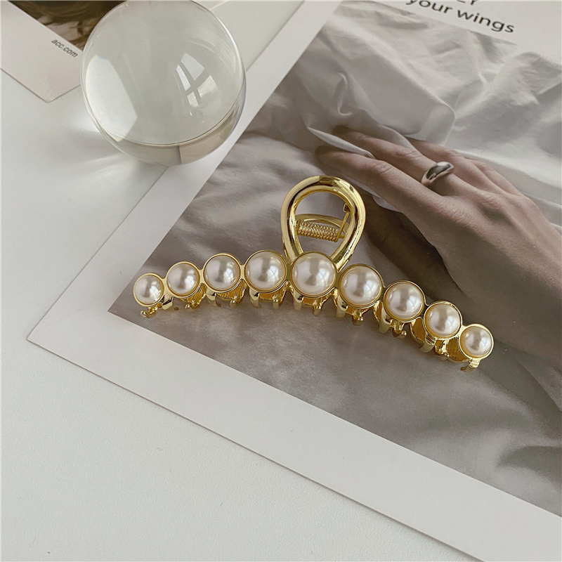 South Korea Elegant Pearl Grip Large Number Net Red Hair Grab Clip Brief Temperament Rear Brain Spoon Hairspoon Hairpin Clip