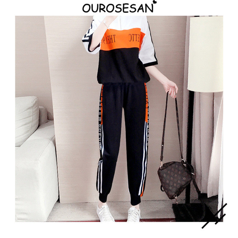 OUROSESAN sports and leisure suit women's new trendy brand Korean version fashion loose Western style sweater two-piece set