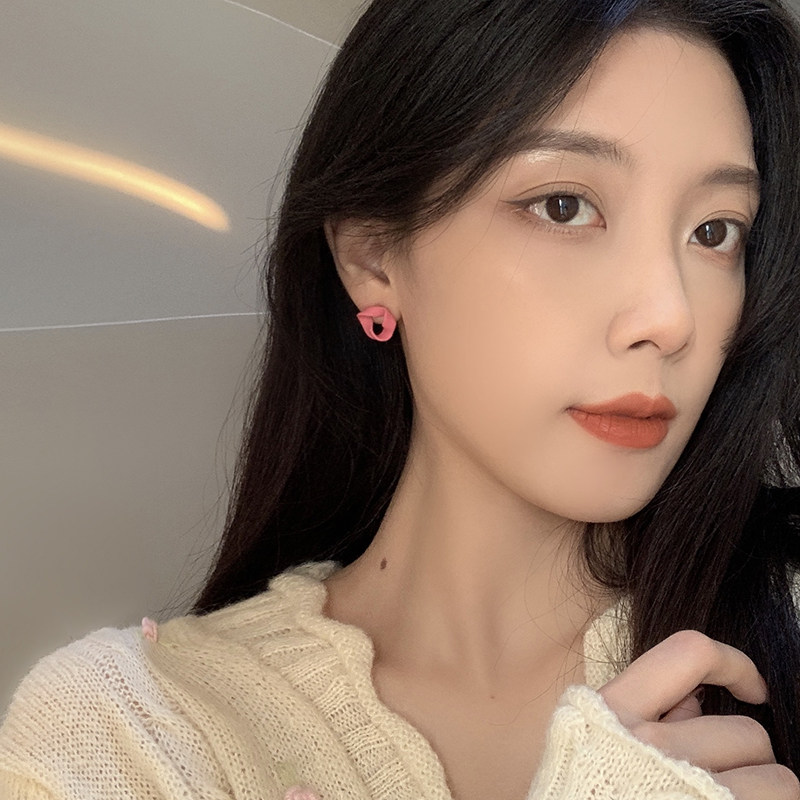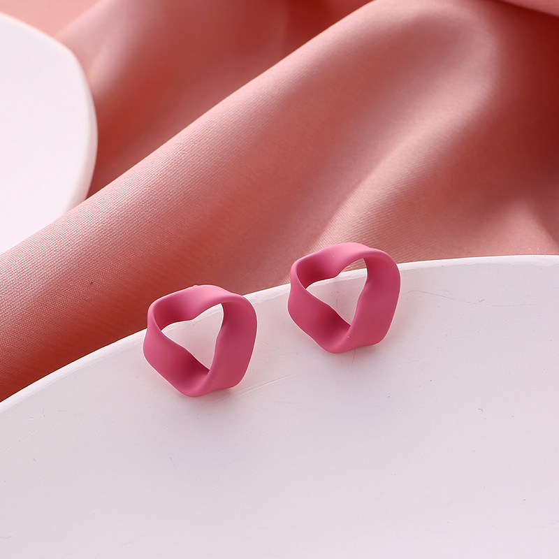 (233) pink triangular ear clip (F6) matt gold triangular ear clip (233) pink triangular ear pin (F6) matte triangular ear pin