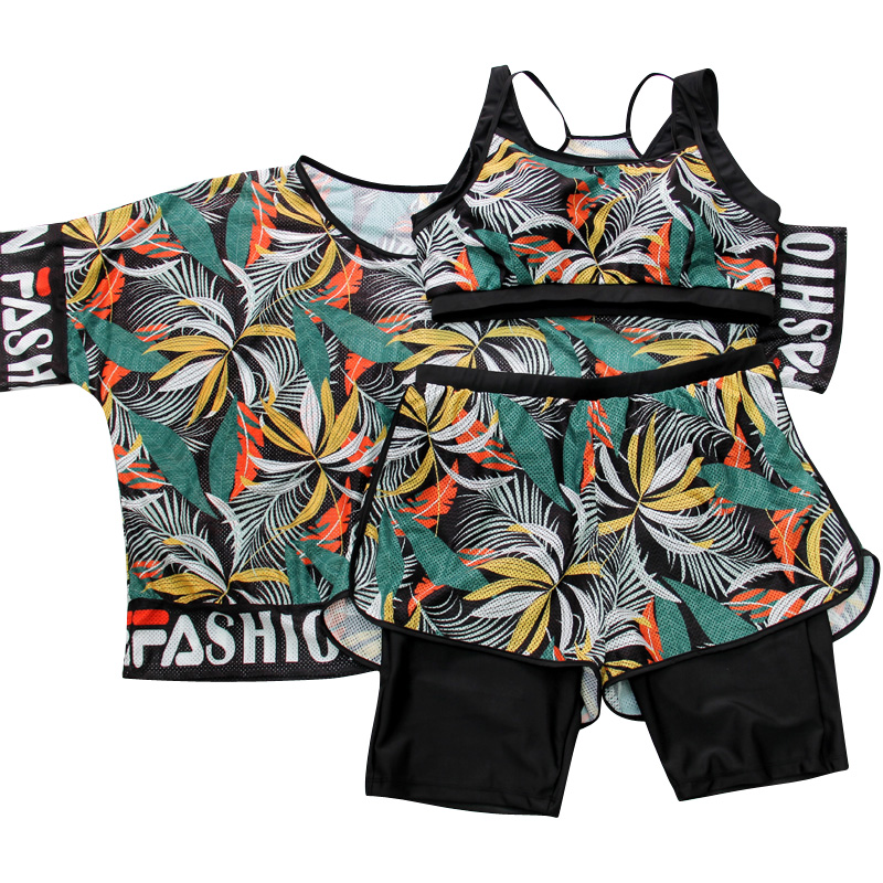Two-piece swimsuit women's large size fat mm cover the belly to show thin 200 catties loose high waist five-point pants plus fat increase swimsuit 300