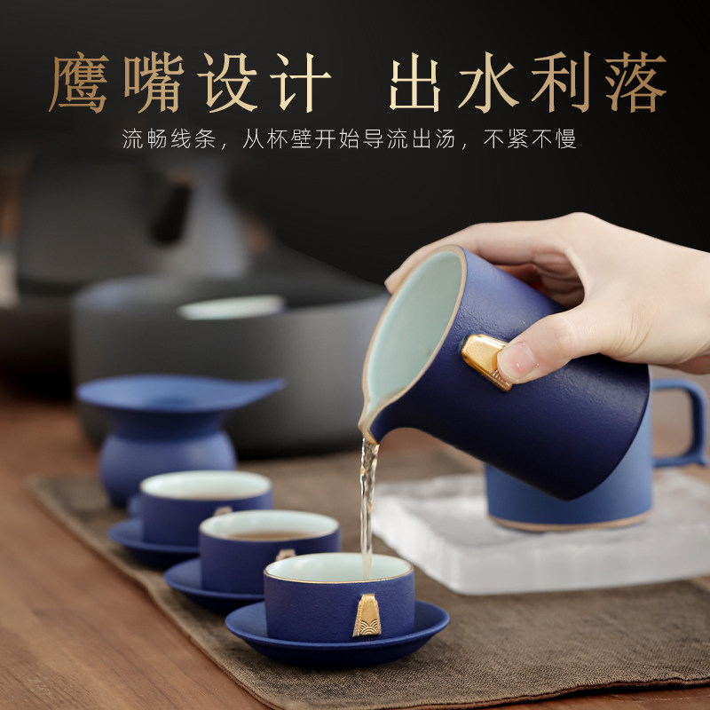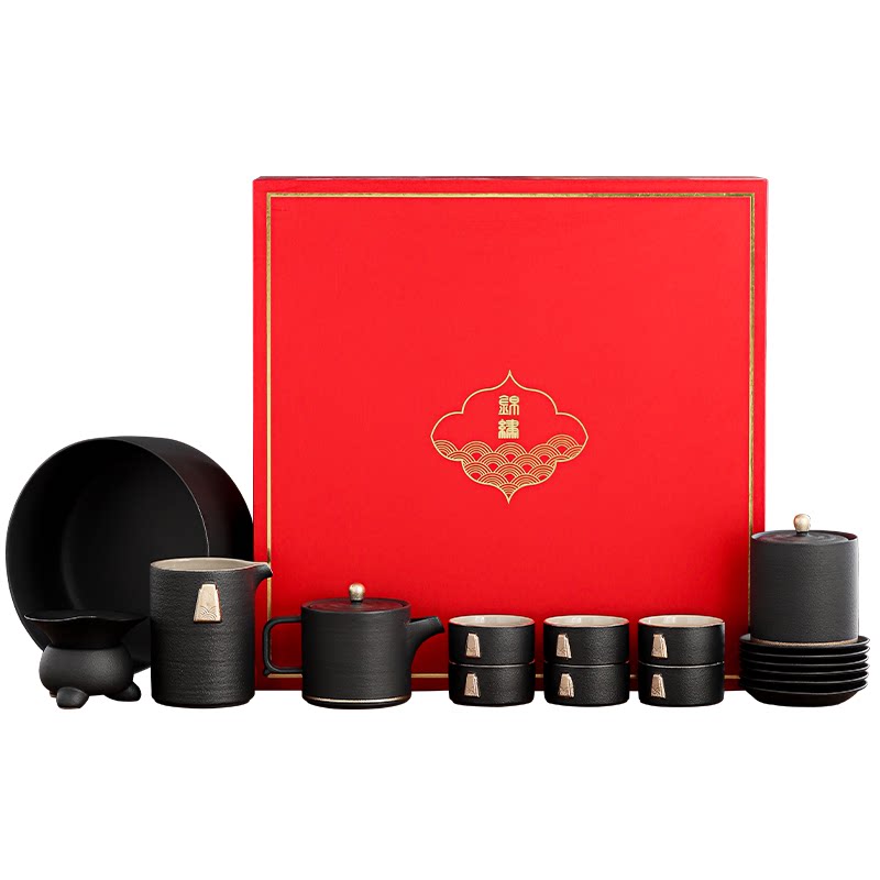 Black ceramic tea set, hand-painted gold Chinese office kung fu teapot, teacup, light luxury gift box