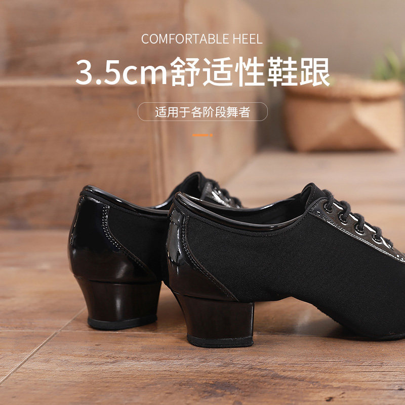 DRH-Children 402 Boys Leather Latin Dance Shoes Children's Dance Shoes Soft Sole Exercise Shoes Middle Heel National Standard Dance Shoes