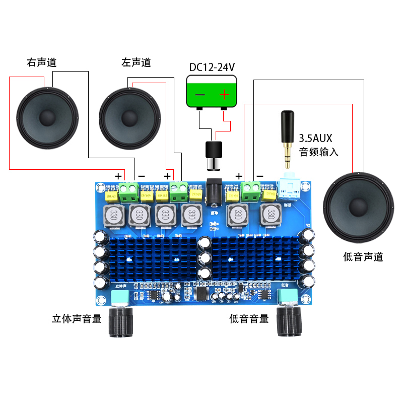 XH-A312 digital power amplifier board 2 1 overweight bass DC12-24V audio amplifier 50W 50W 100W