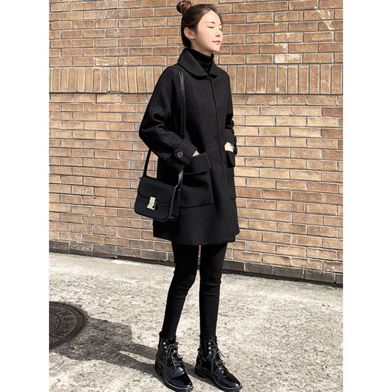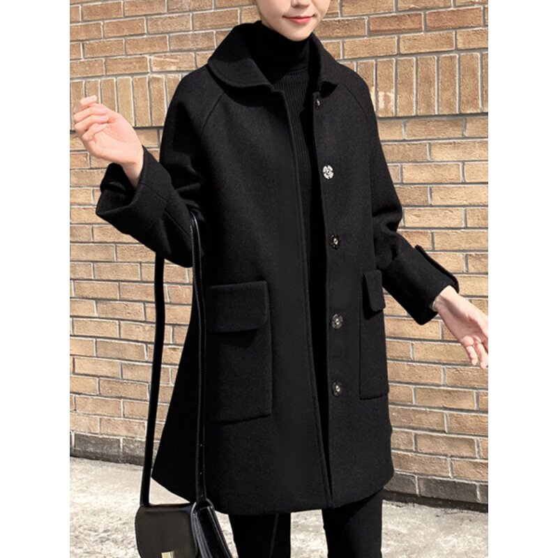 Black bifacial cashmere suede Sub-dresses Women's spring autumn season 2021 new body slim fit long version of the fur coat