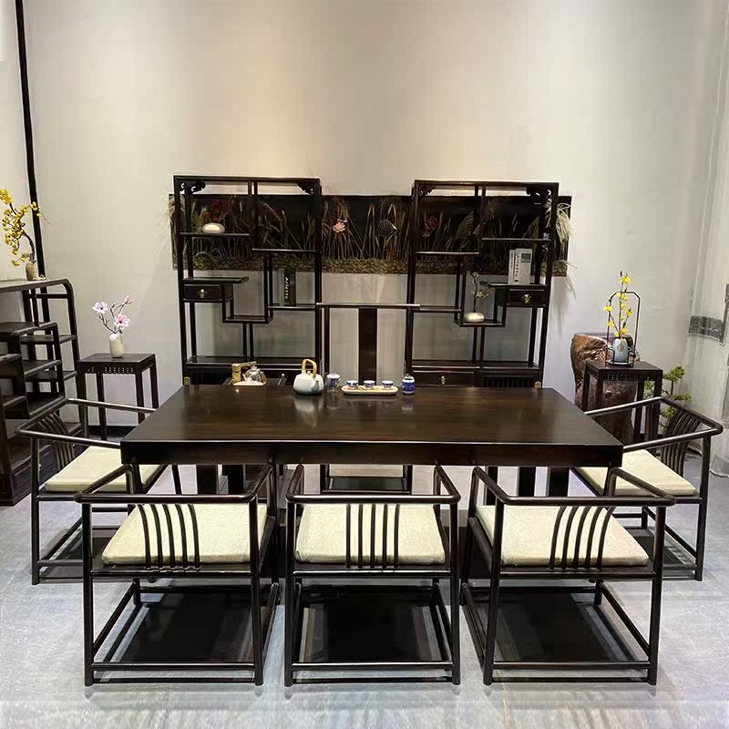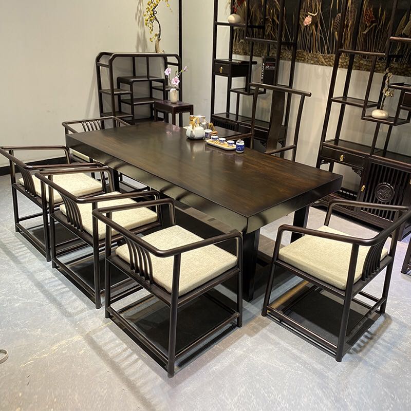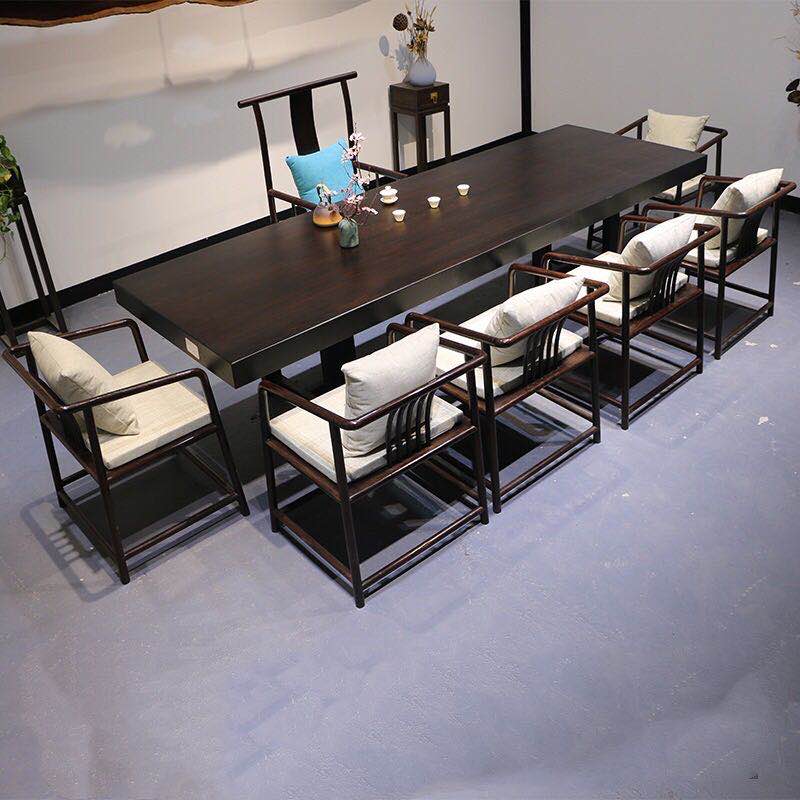 Solid wood ebony large board tea table simple modern new Chinese desk log tea table conference table desk drawing case