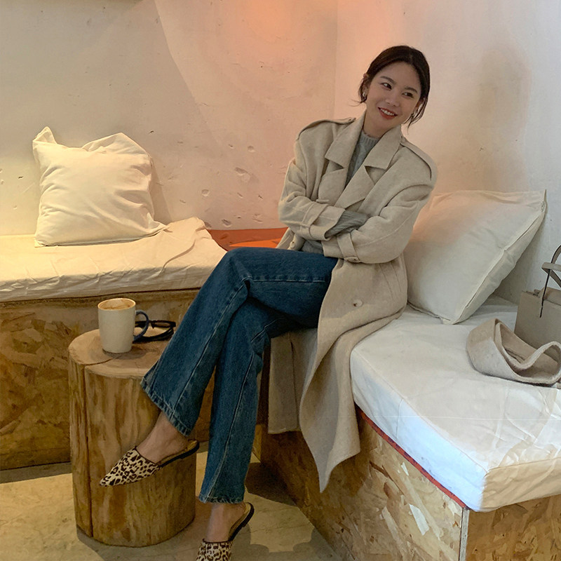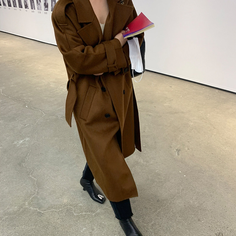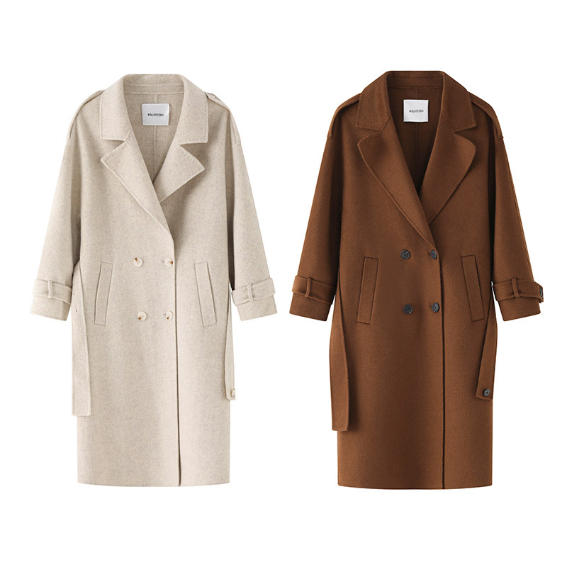 WXLSTUDIO water ripple double-sided woolen coat women's 2022 winter mid-length double-breasted silhouette woolen coat