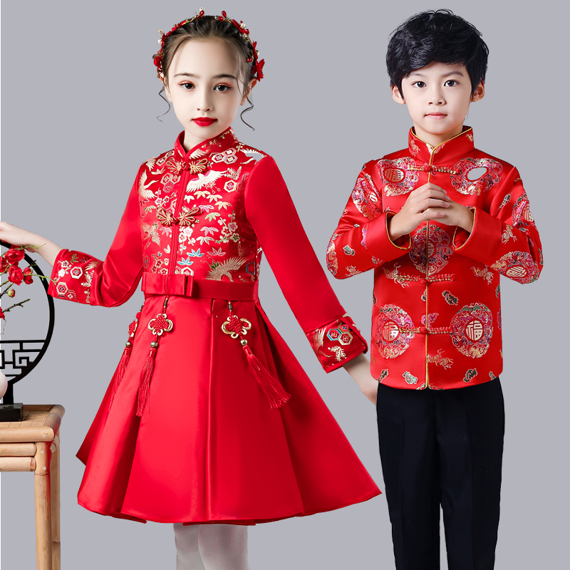 New Year's Day children celebrate with Chinese Wind Tang Costume Presenter Gown Costume Guzheng Performance for Primary School Children's Choral Service