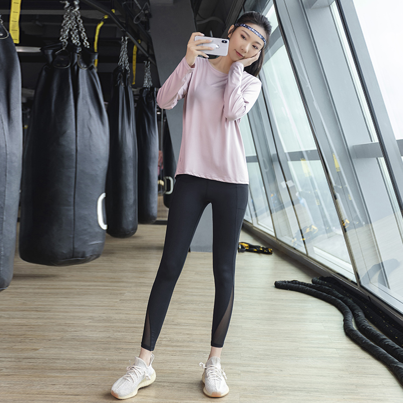 Long sleeve yoga clothes sexy Pilates on clothes female dry professional sports fitness T-shirts loose running cover