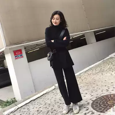 claudie pasey autumn wool knitted suit women sweater waist waist temperament casual wide pants two-piece set