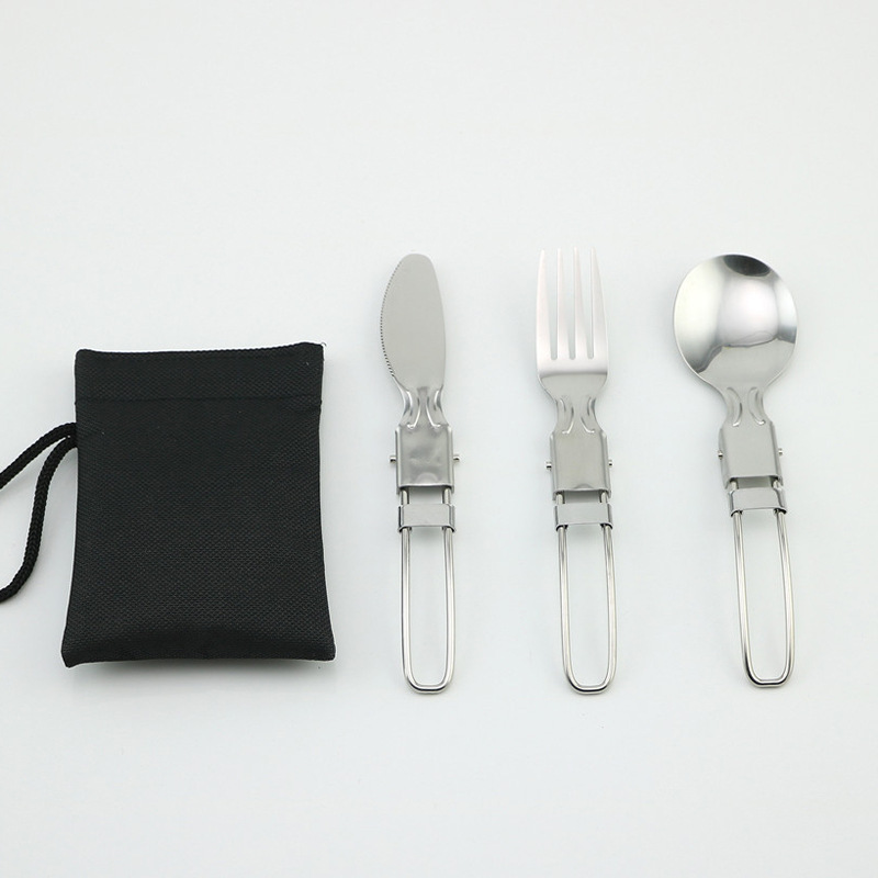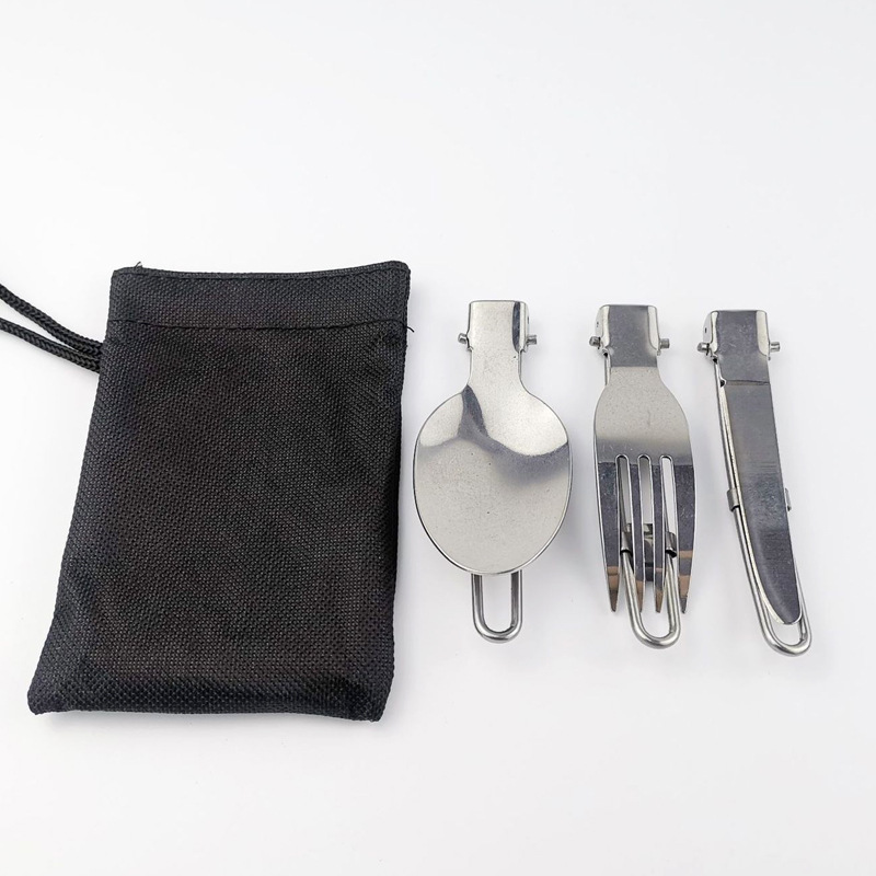 Cross Border Outdoor Travel Stainless Steel Folding Cutlery Three Sets Portable Folding Knife Fork Spoon Cloth Bag