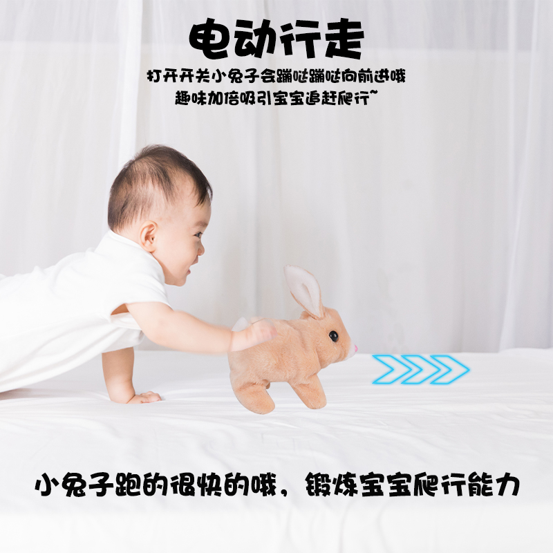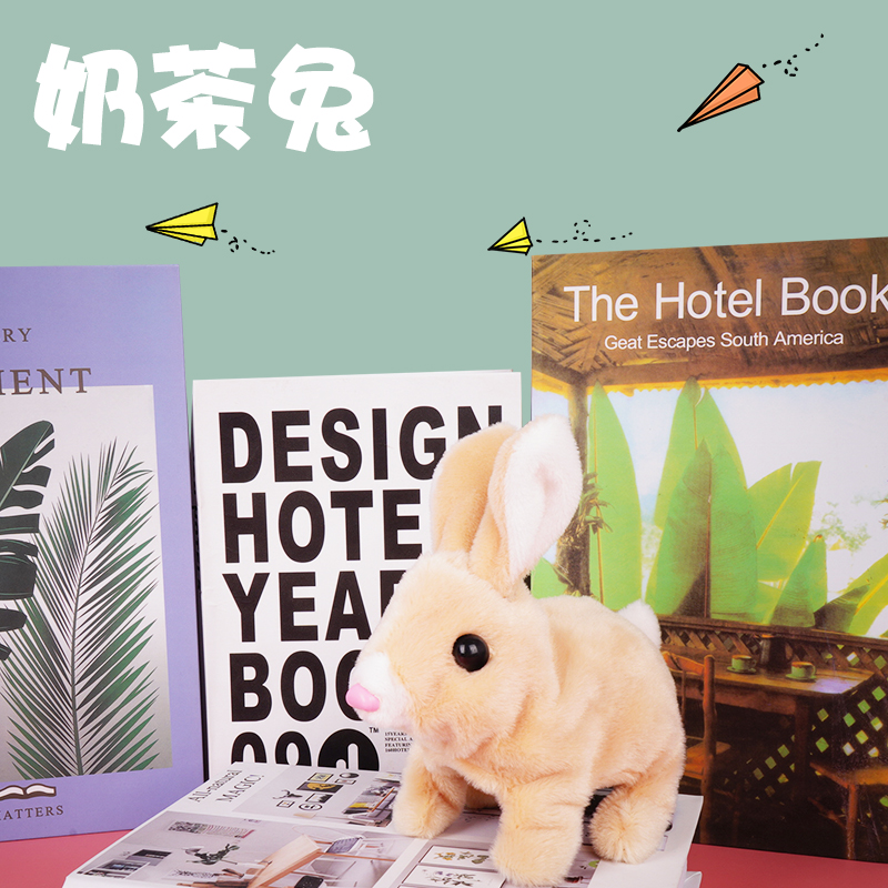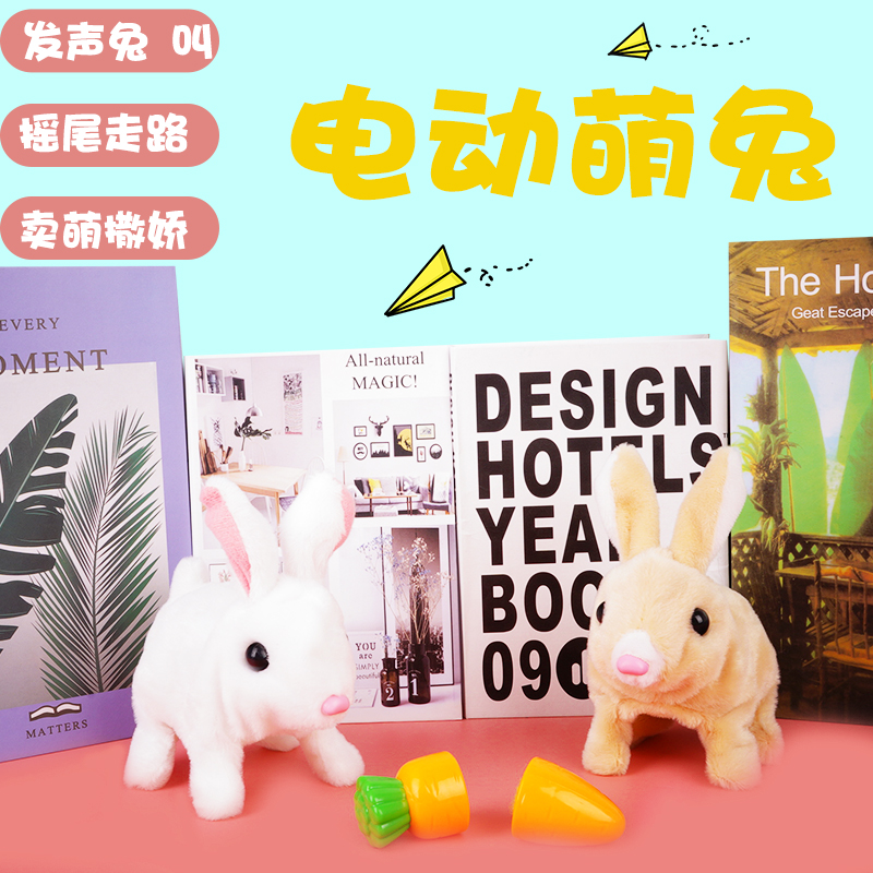Little white rabbit plush toy simulation electric doll dog animal ears can move the milk tea color bunny girl