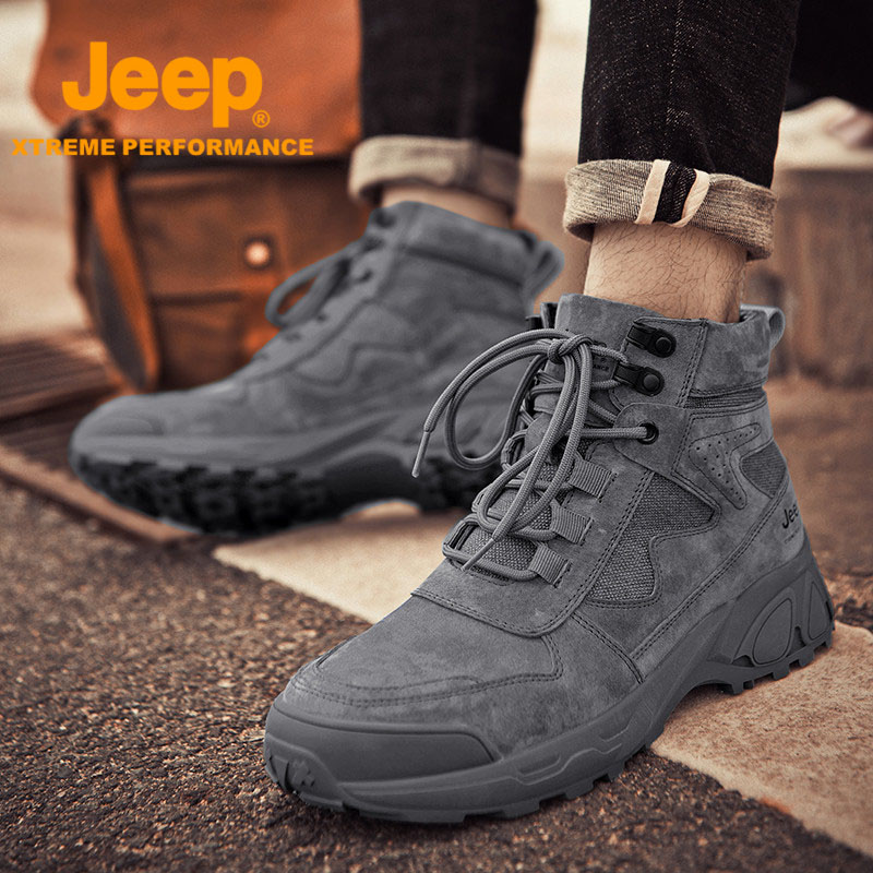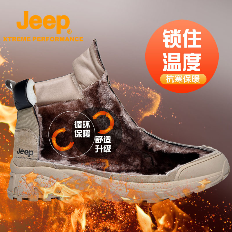 JEEP men's new Martin Boots male real leather, high tube, autumn and winter outdoor plus thicker boots warm boots