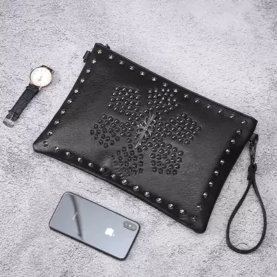 Hong Kong men's clutch bag Korean new casual wrist bag fashion leather bag rivet clutch bag men's bag tide