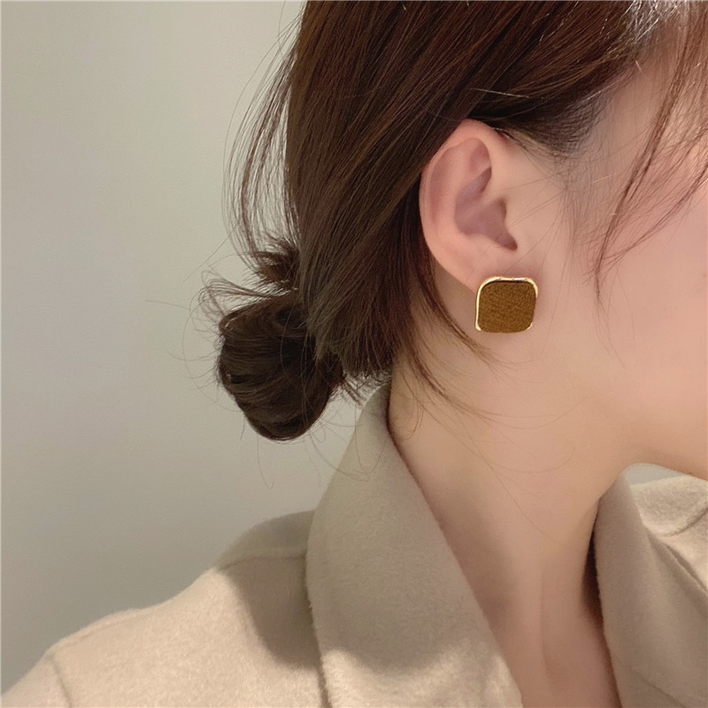S925 Silver Needle Autumn Winter Retro Port Wind Earrings Female Tide Fashion Temperament Lukewarm Air Ear Needle Minimalist Superior Ear Accessories
